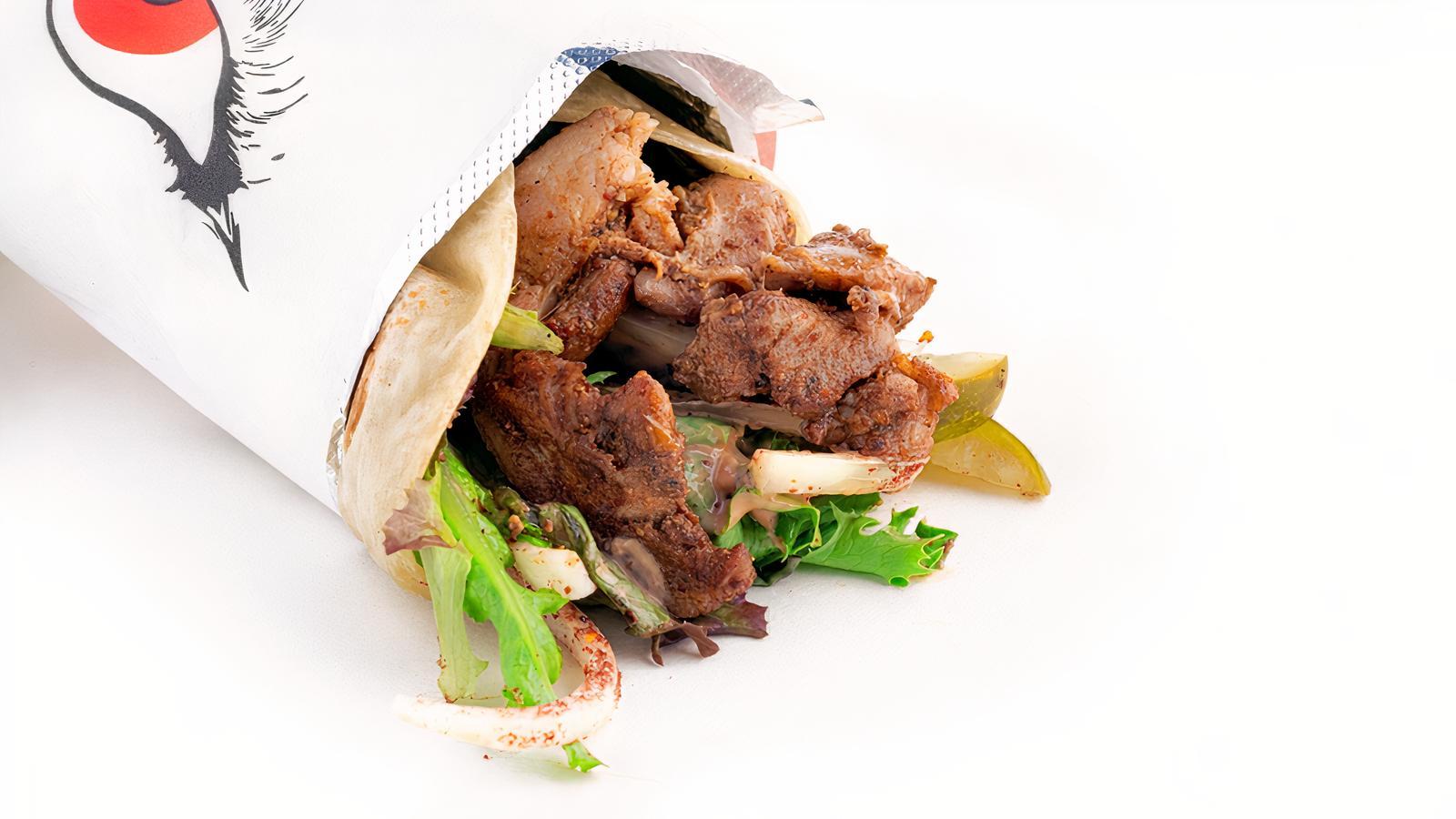 PROTEIN MINI UNWRAP IN A PLAIN DOUGH Pick a protein, mixed greens, onions, pickles, and Wolf Ketchup®